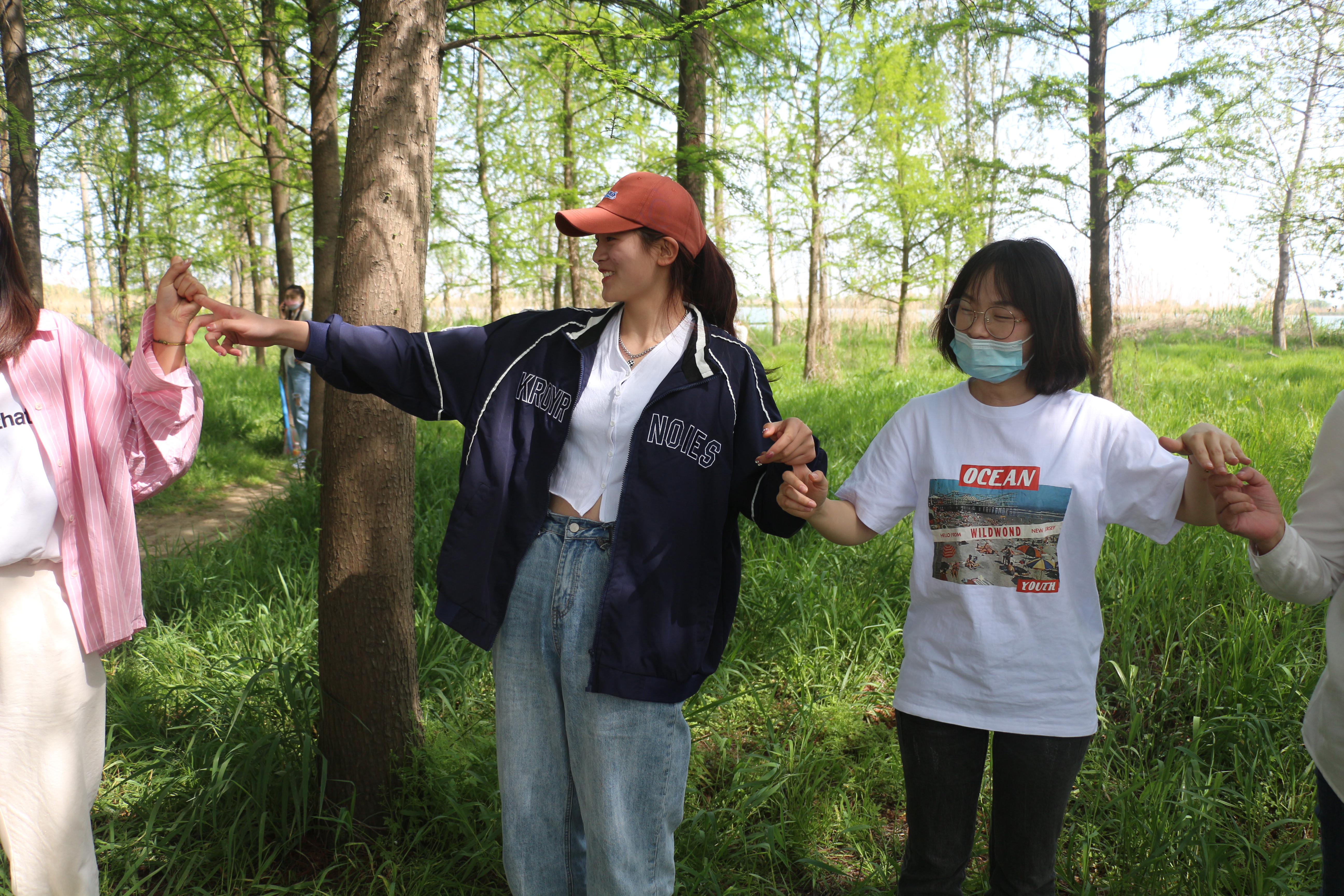 分组竞技前,锻炼大家集中注意力的暖场小游戏已令小伙伴们笑开怀!绿树林荫下,相机咔嚓咔嚓定格欢乐瞬间~